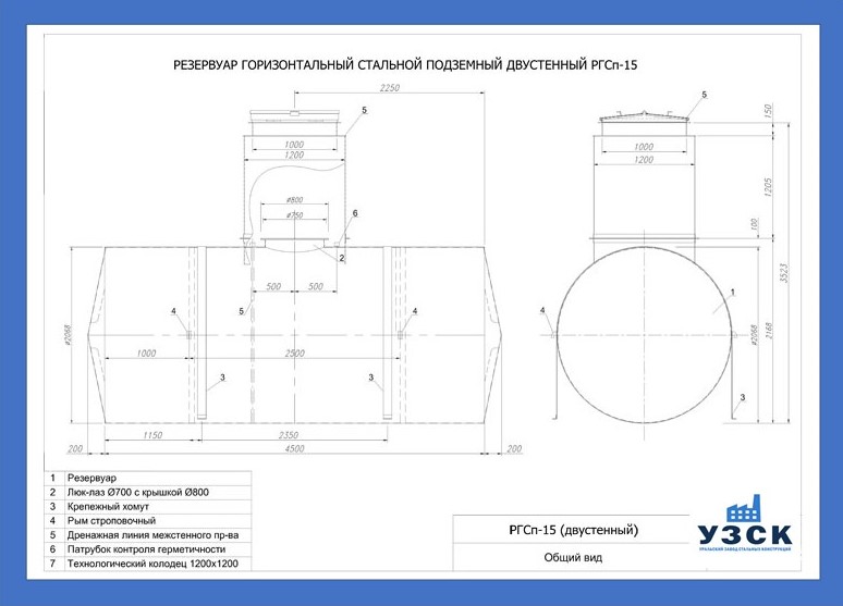 РГСДн-15: горизонтальный резервуар двустенный наземного расположения;
